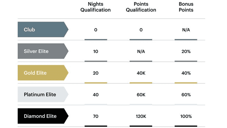- Introducing a new Gold Elite tier starting at 20 nights, with an industry-leading 40% bonus point structure
