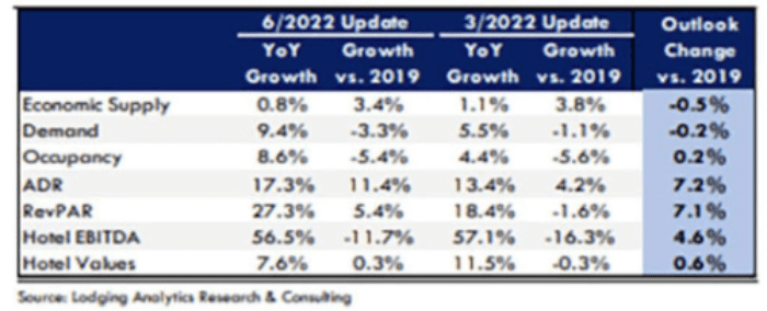 2022 U.S. Hotel Industry Forecast: June 2022 Edition vs. March 2022 Edition