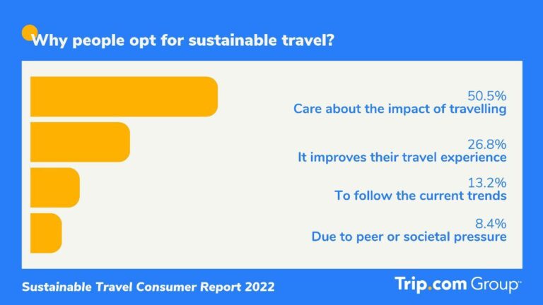 Some 50.5% of respondents said they care about the impact of travel on future generations, a third (26.8%) cited its role in improving the travel experience, another 13.2% perceived it as trendy, and 8.4% admitted people opted for sustainable travel due to societal pressure.