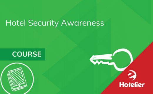 The Hotel Security Awareness course provides all hotel team members withe the fundamental skills to ensure a secure environment for guests and employees. The course covers threats from physical as well as cyber threats in an online format, rich with images, multimedia, case studies and simulations. Available at eHotelier Academy.