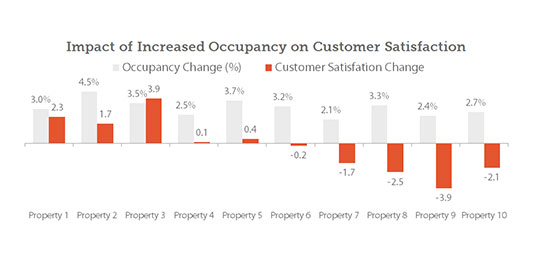Comparing occupancy with guest satisfaction is a simple and effective approach to ensure that management is handling changing occupancy and delivering a consistent guest experience.