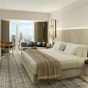 The hotel is slated to open in 2018 with 463 Chambers plus multiple concept suites, a rooftop pool and multiple dining outlets including The Commons Club and a rooftop bar. The first and second floors will be occupied with high end shopping, while Virgin Hotels will populate the floors above. Virgin Hotels is aiming to achieve LEED certification.