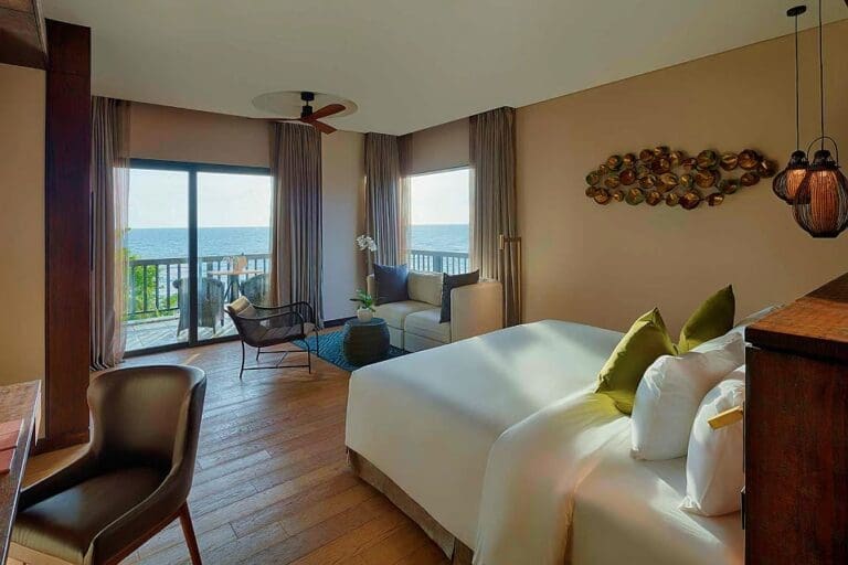 Grounded in sustainable architecture and refined Vietnamese craftsmanship, the 51 villas and 63 guestrooms reflect the natural beauty of Phu Quoc. The luxurious villas and guestrooms feature subtle earth tones and ocean views, transporting guests to a modern island oasis.