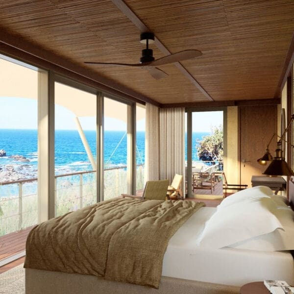 Introducing a new hospitality concept for the region, The Revery will offer two distinct accommodation styles. The Revery Wild, eco‑luxury tented pavilions, starting from 40 sqm of interior space, positioned close to the shore and fully embrace the surrounding nature with spacious decks and hydrotherapy pools. The Revery Suites, carved into the cliffs, will offer quiet architectural elegance from 53 sqm and large outdoor patios, each featuring a private heated pool. Both options provide exceptional privacy along with uninterrupted sea and sunset views.
